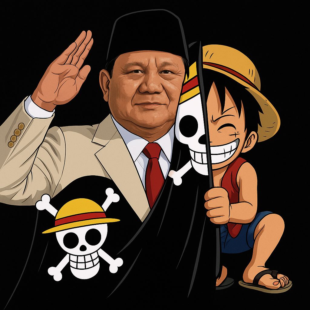 Ada satu sosok yang tanpa sengaja menjadi bayangan paling dekat dari narasi One Piece di dunia nyata: Prabowo Subianto.