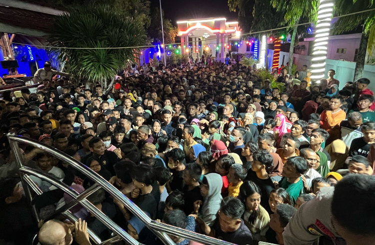 Usman bersama ratusan orang lainnya antri amplop sejak pukul 19.00 WITA. Selain Usman, ratusan anak-anak hingga orangtua usia lanjut tampak berdesak-desakan di luar pagar rumah.
