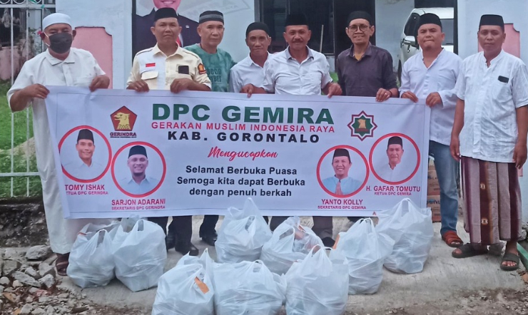 POROSRAKYAT.ID – DPC Gerakan Muslim Indonesia Raya (GEMIRA) Kabupaten Gorontalo memprakarsai pembagian makanan menu buka puasa bagi masyarakat serta pengguna jalan di kawasan kota Limboto.