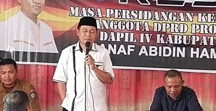Legislator Deprov Manaf Hamzah dihadapan konstituen saat gelar reses (Foto ISt)