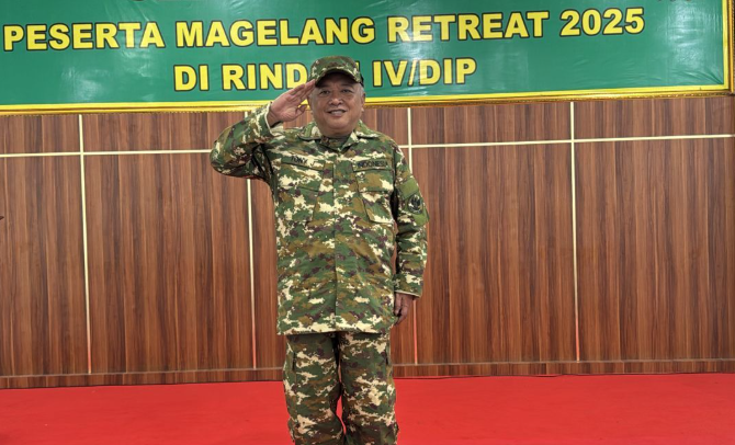 Selanjutnya acara Parade Senja, kemudian kegiatan retreat ini akan ditutup oleh Presiden Republik Indonesia, Bapak Prabowo Subianto, besok pada 28 Februari 2025. Setiba di Akmil Magelang, wabup mengenakan seragam loreng Komcad.